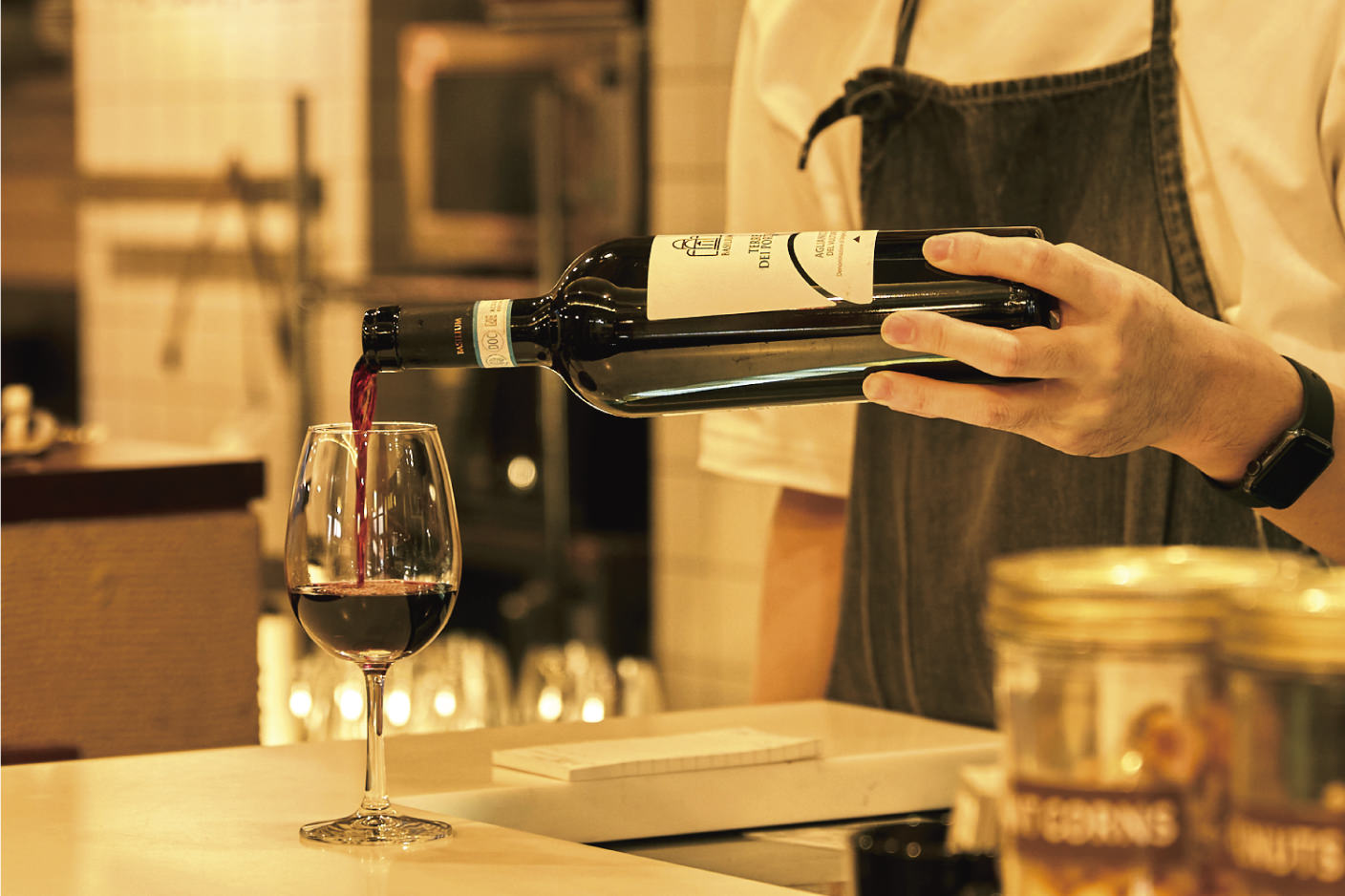 そのために、スタンディングスペースを設けたり、カウンターの高さを1,050ミリにしたり、コスパの高いデイリーワインや小皿のフレンチデリを提供したり、客単価を抑える営業方針だったり、お客さんとお客さんとを繋ぐ接客をしたり、いろいろと工夫をしています。お客さんは、1杯でサクッと帰ることもあれば、1杯で長時間楽しむこともあるでしょう。
