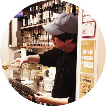 本業で俳優をやっているんですが、生活のためアルバイトをしていた飲食店が潰れてしまい、新しく働き場所を探す必要がありました。もともとvivo中野店によく通っていたので、そこで働けないかとも考えたのですが、コロナ禍だったのでアルバイトは募集していませんでした。そんな中、同じ中野店の常連の方がvivo阿佐ヶ谷店を出店されて、話を聞く機会がありました。それまで自分が店を出すというアイディアはなかったのですが、「そうか!FCオーナーになって自分で働き場所を作ればいいんだ」と。イメージが一気に湧いてきて、わくわくしましたね。ちょうどその頃、仕事を探している飲み仲間がおり、奇跡のようなタイミングで店長をお願いする事ができました。事業計画書の作り方とか起業の段取りは阿佐ヶ谷店オーナーさんにもアドバイスしてもらいました。仕込みが大変なイメージの飲食業ですが、vivoは仕込みゼロで運営できるのも出店動機のひとつになりましたね。私は料理スキルがある訳ではないし、ワインやウィスキーにものすごく拘りがあるわけではないので、vivoのビジネスモデルが合っていたんだと思います。